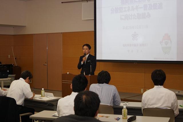 二日目は、グループディスカッション「組合員から信頼される組織となるために」と題して、組合役員として自分の課題および自単組における課題は何かを話し合っていただきました。そのあと、政治の重要性を学ぶため組織内議員 守谷正人福岡県議会議員(城南区)より福岡県における再生可能エネルギーの対応状況について報告をいただき、これまで以上に職場に関係する内容が議会でも課題になっていることを知ることができました。これにより、組織内議員の重要性をご理解いただくとともに、これまで以上のご理解・ご支援をお願いしました。