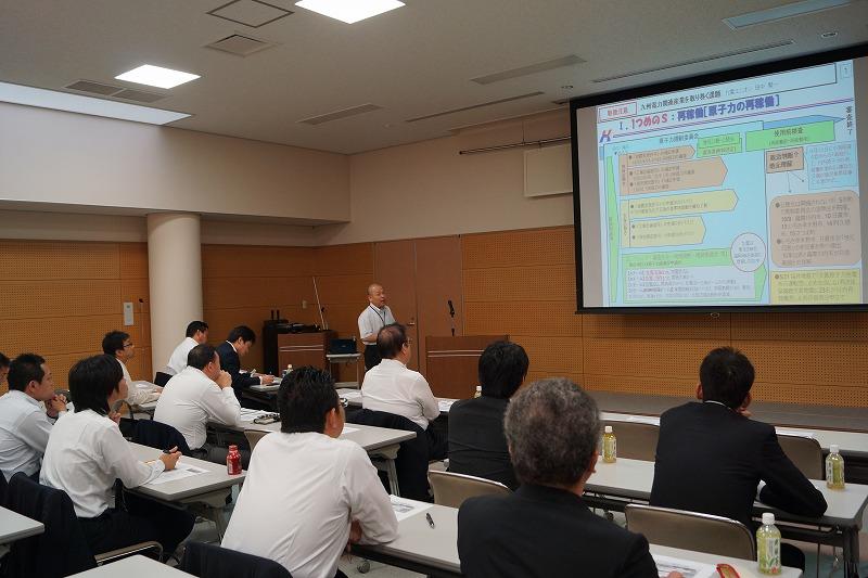 九州電力総連に加盟する単組は、様々な業種に分かれていることから、同じ業種別で取り巻く課題を共有化し、部会会議内で出された課題を精査し、その解決に向けて関係箇所へ提言することを目的に業種別部会会議を毎年開催しています。15日は、「配電・お客さま部会」「発電分科会」「送変電分科会」を開催し、冒頭、「九州電力総連を取り巻く課題について」九州電力労働組合 田中副委員長から講演をいただき、様々な課題を共有化しました。その後、分科会に分かれて単組間での意見交換を行ったのち、九州電力事業推進本部および部会主管部のグループ長クラスの方にも出席をいただき、健全なグループ経営発展に向け、業種別の抱える課題解決に向けた提言や情報共有化などについて意見交換を実施しました。