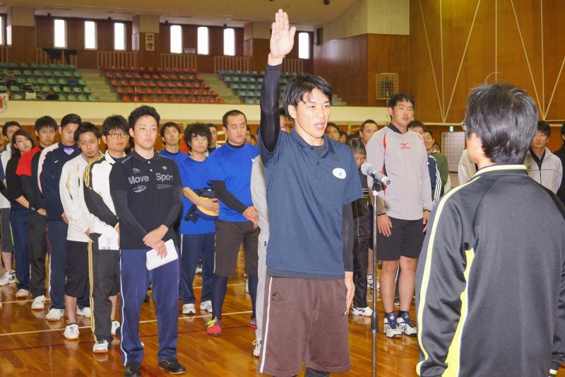 主催者代表挨拶では、九州電力総連からも多くのボランティアが参加した“2014スペシャルオリンピックス福岡”にふれ「ハンディを背負ったアスリートが、ひたむきに、そして明るく競技に参加している姿を見てこちらも元気をもらった。スポーツには人を明るく元気にする力がある。大会を通して皆さん元気にそして明るく楽しんでいただくとともに『ふれあい』の輪を職場まで広げていただきたい。」と挨拶しました。その後、前回優勝の佐賀県電力総連による力強い選手宣誓を行った後、予選をスタートしました。