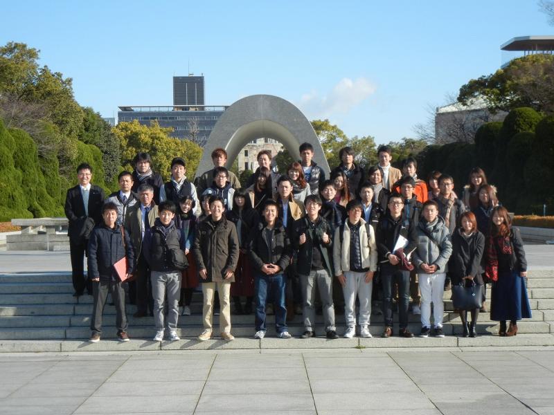 2日目は、広島平和記念公園で4班に分かれ、現地ボランティアの方々より広島の戦後の状況などを案内いただきました。約2時間と短い時間ではありましたが、原爆ドームの今と昔の違いや震源付近の被災状況、平和記念公園内にあるモニュメントの意味、被災者の方々の平和に対する思いなどを知り、青年世代で少しでも身近に感じられたのではないかと思います。