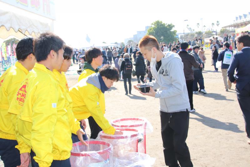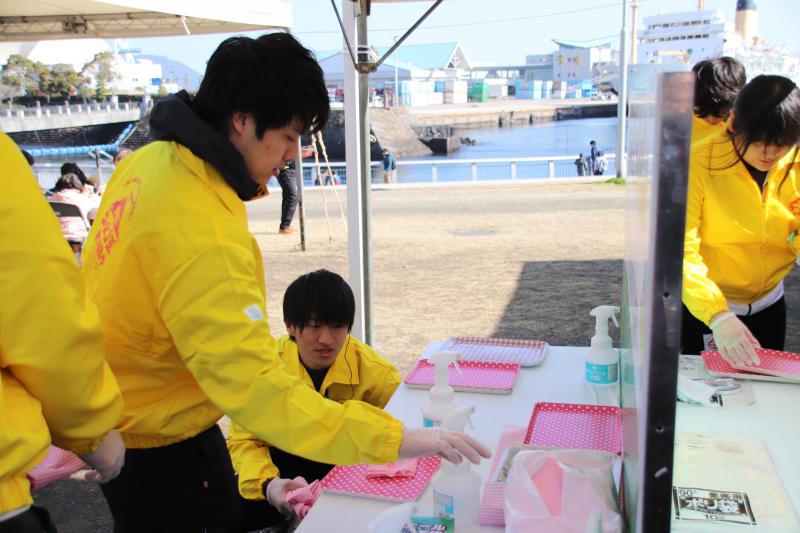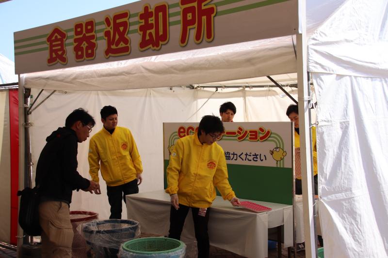 活動内容は、テーブル清掃、残飯処理、トレー(お盆)の清掃などですが、中国の観光客(春節時期)も加わり、イベント参加者も年々増加していることから、アルバイトの学生さんに交じって、休む暇もなく取り組みました。