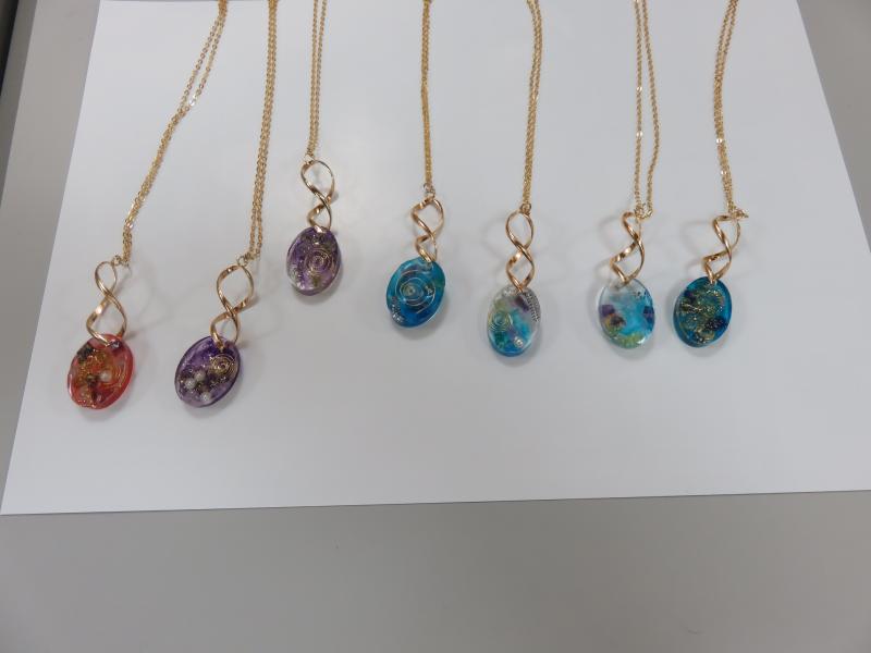 今回は、「la-muse(ら・もぜ)」の宇都美江様を講師に、レジンアクセサリー作りを行いました。レジンアクセサリーは、「いいことが起こるお守り」的な位置づけのアクセサリーです。