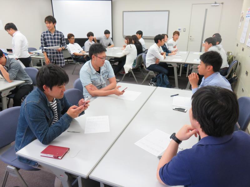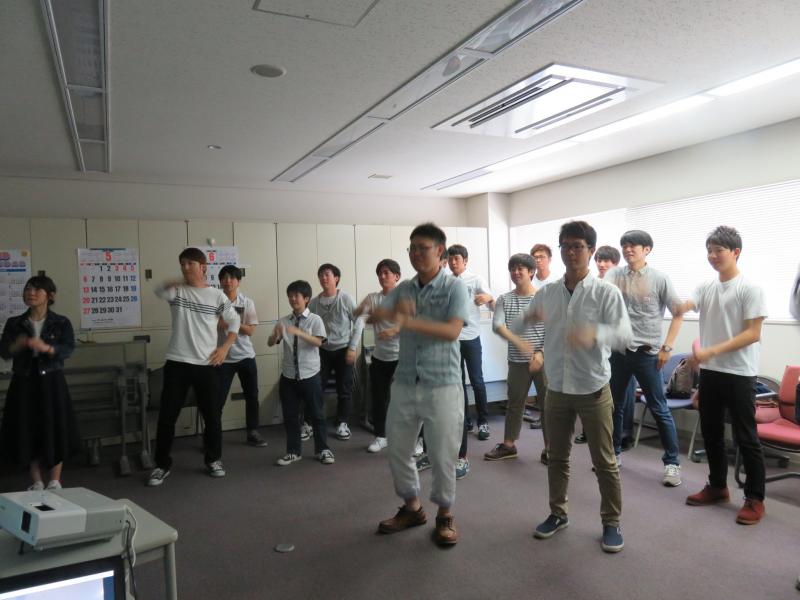 鹿児島県電力総連事務局及び青年委員会メンバーの挨拶を行ったあと、九州電力総連の構成やこだまの目的などについて学びました。続いて、4班に分かれ自己紹介・班長決め、ダンス練習や、開会式で行う鹿児島県電力総連の紹介内容をグループごとに検討し、プレゼンを行い決定しました。