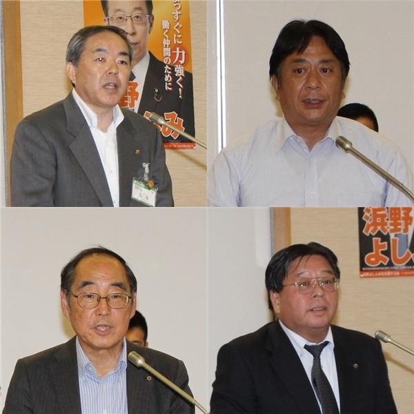 その後、連合北九州の浅野斉二議長代行、北橋健治北九州市長代理 田中規雄様、および推薦議員を代表して3名、さらに九州電力総連の坂口会長代理から激励や日頃の支援に対する祝辞をいただいた。