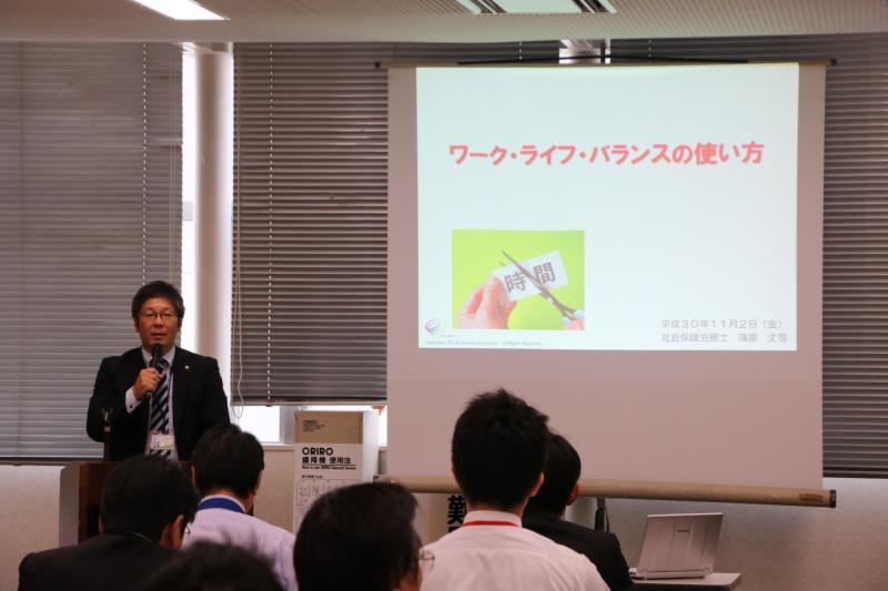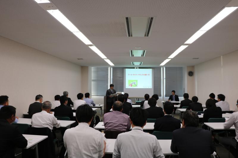 まず、基調講演として社会保険労務士『篠原丈司』様より「ワーク・ライフ・バランスの使い方」と題し講演を頂いた後、安全講話として組織内議員『藤田正道』より「大分県の防災対策」について講話を頂きました。