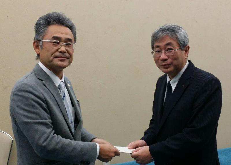 寄付金は、12月10日(月)に、鹿児島県労福協の榮留理事長にお渡しいたしました。