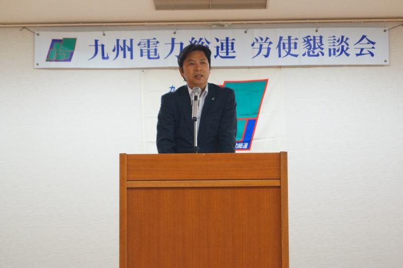 開会に際して、林会長からは「安全や春闘・グループ経営の強化、そして“浜野必勝”に向けた協力のお願い」の挨拶受け、企業を代表しての挨拶は九州電力㈱BS統括本部 人材活性化本部 部長 永松達也 様より「九州電力を取り巻く経営環境の説明とグループ経営ビジョンの思い」の挨拶を受けました。