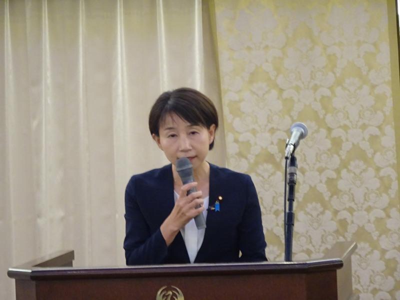 長崎1区選出の西岡秀子衆議院議員より、今次国会の予算委員会にて代表質問された経験を踏まえ、国の情勢や国政の内情など、国政報告会という形で分かりやすく講演頂きました。