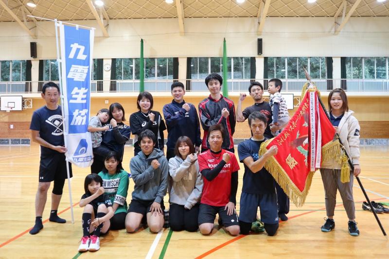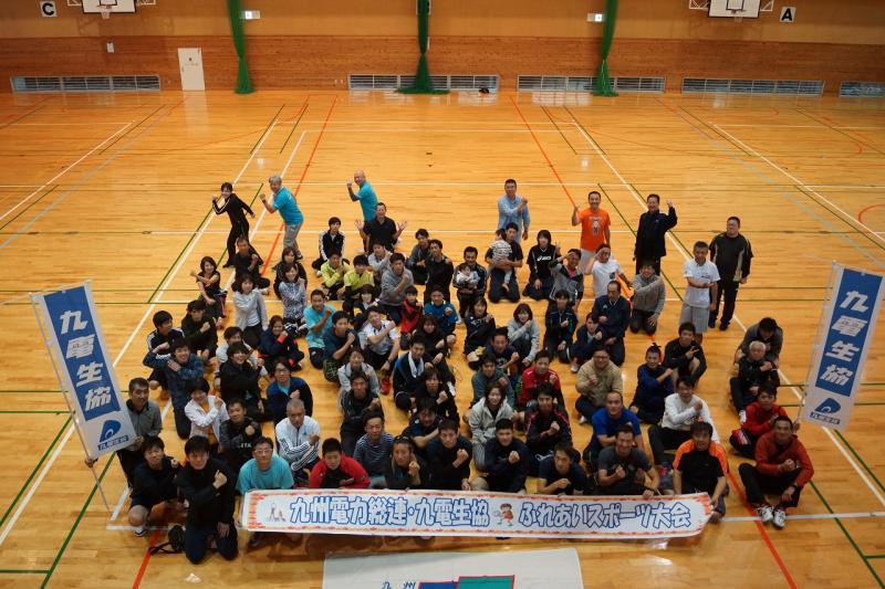 九州電力総連は、11月9日(土)に菊池市旭志体育館において県電力総連代表9チーム(福岡電力総連2チーム)と、九州電力総連・九電生協合同チームを加えた全10チーム、約118名の参加(応援者含む)のもと「九州電力総連・九電生協 第22回ふれあいスポーツ九州大会」を開催しました。