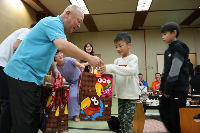 大会終了後、会場を「菊池観光ホテル」に移動して表彰式ならびに九電生協事業「冬のうまいもん」購入への協力願い及び『30周年記念事業』のご紹介なども含め、交流懇親会を開催しました。懇親会では、各県電力総連や九電生協からのお土産が当たる抽選会を交えながら、子供さんから奥様まで楽しい「ふれあい」のひと時を過ごしました。