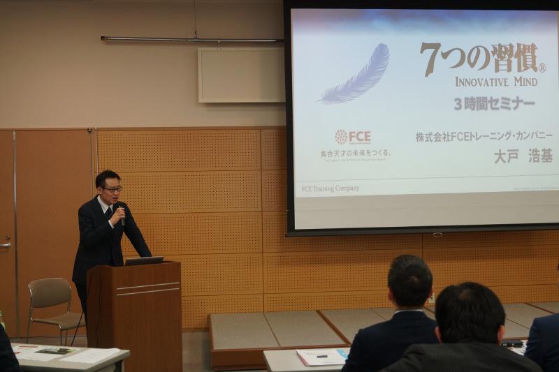 第一部では「魅力あるリーダーを目指して」と題し、株式会社FCE トレーニングカンパニーの大戸講師を迎え、「7つの習慣」を受講しました。 「7つの習慣」とは、米国のスティーブン・R・コヴィー博士がアメリカ建国以来、成功者に関する200 年分の文献を緻密に調査・分析し、導き出した考え方で、それは個人そして人間関係のあり方の原理原則を提唱したもので、現代に生きる我々にもひとつの指針を示してくれるものです。 2017年度 役員フォーラムでも7つの習慣の講義を受講致しました。今年度は、先に、7つの習慣の体系(下記参照)を振り返るため、一通りポイントをお伝えした後に、前回の続きで、あまり講義で触れていなかった2,3,4,7の習慣についてお話頂きました。参加者のうち、約40名の方は、2017年度も受講されており、今回で、7つの習慣の体系すべてを習得された事となります。 大戸講師より、どうしたら目的を見つけられるか、重要事項が後回しにならないようなスケジュールが作れ るか、それを誠実に実行できるかなど、習慣に対する心構えなどを伝えて頂き、最後には「早く良い習慣を身につけたものが勝ち」「習慣が運命を決める」と締めくられました。 頭では分かっていてもなかなか実行出来ていないことを痛感させられるものでした。受講した役員からも、「新しい発見が出来た。是非、企業側へも研修受講を進めたい」との声もあり、反響は大きなものでした。受講した役員が7つの習慣を単組に持ち帰り、水平展開・組織全体に広がれば、今以上の素晴らしい組織となっていることと思います。
