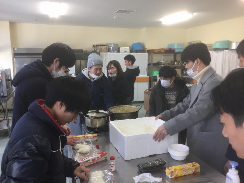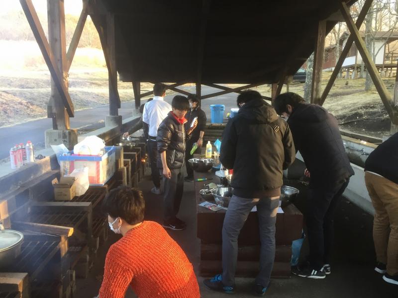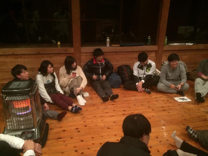 今回のプレキャンプは実行委員37名、九州電力総連青年委員会委員8名の計 45名の参加となりましたが、各自寒さにもめげず限られた時間の中で、本番を想定したプログラムの確認、食事の提供にかかる調理配膳時間の確認やメイン会場設営・音響チェック等を実施しました。 実行委員以外にも、事務局として九州電力総連亀﨑事務局長、小原副事務局長、福岡電力総連の松林事務局長の3名も参加し、過去の経験を含めた実行委員への助言を行いました。