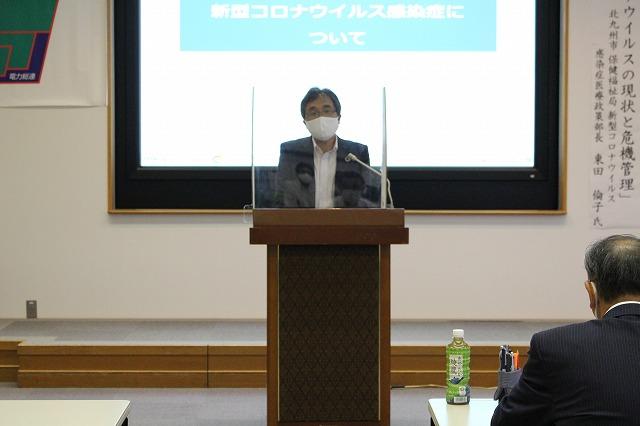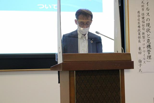 今回の労使安全懇談会のテーマは、世界中で猛威を振るっている新型コロナウイルスについて、正しく知り、正しく恐れることが重要と捉え、日頃からお世話になっている、世良俊明北九州市議会議員に相談し、北九州市で陣頭指揮をされている新型コロナウイルス感染症医療政策部の責任者をお招きし、「新型コロナウイルスの現状と危機管理」と題し、ご講演をいただきました。