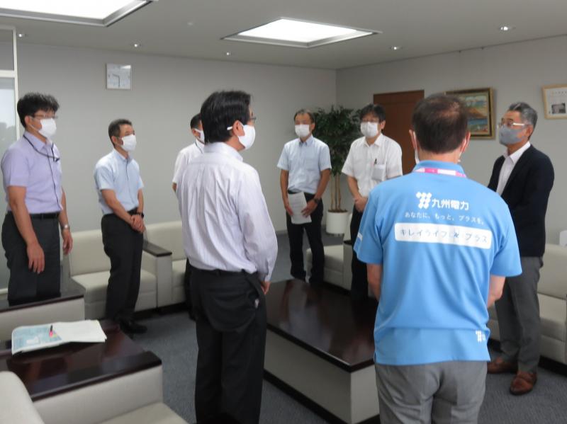 黒江会長は、中野 鹿児島支店長(九州電力)、大岩根 鹿児島支社長(九州電力送配電)に『安全最優先の徹底』について、口頭要請しました。