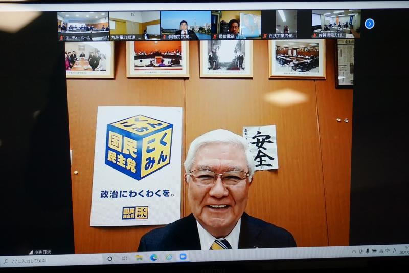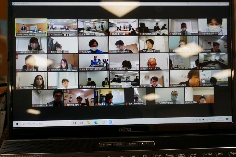 九州電力総連は令和3年2月20日(土)第1回政治活動委員会(総会)終了後に2021年度「政治研修会」を開催しました。コロナ禍につき、Zoomを使用したWeb方式とし、57箇所からのWeb参加で、組織内議員や推薦・支持の国会議員など含め、総勢107名に参加いただきました。