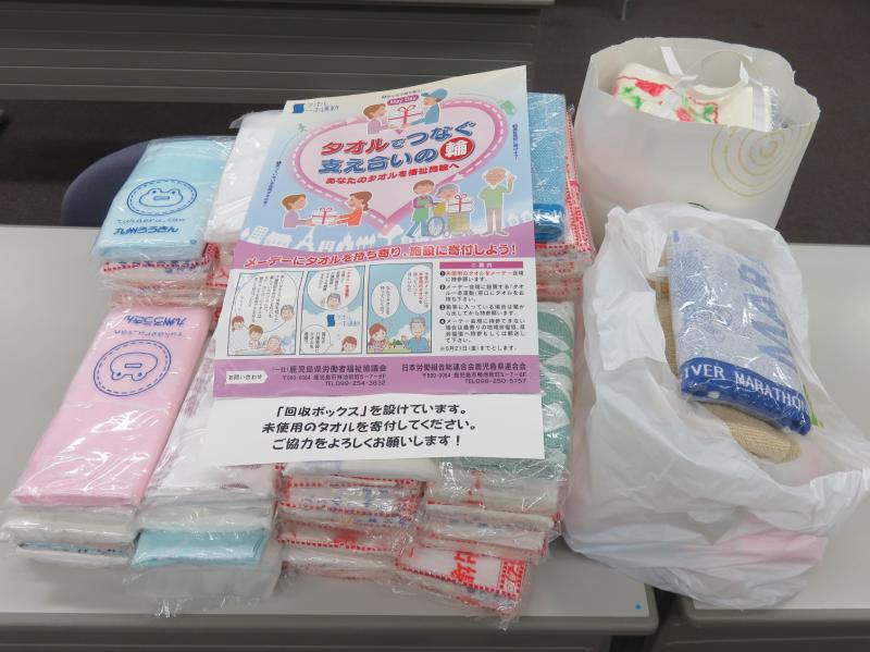 すべてのタオルを鹿児島県労働者福祉協議会に、寄付させていただきました。