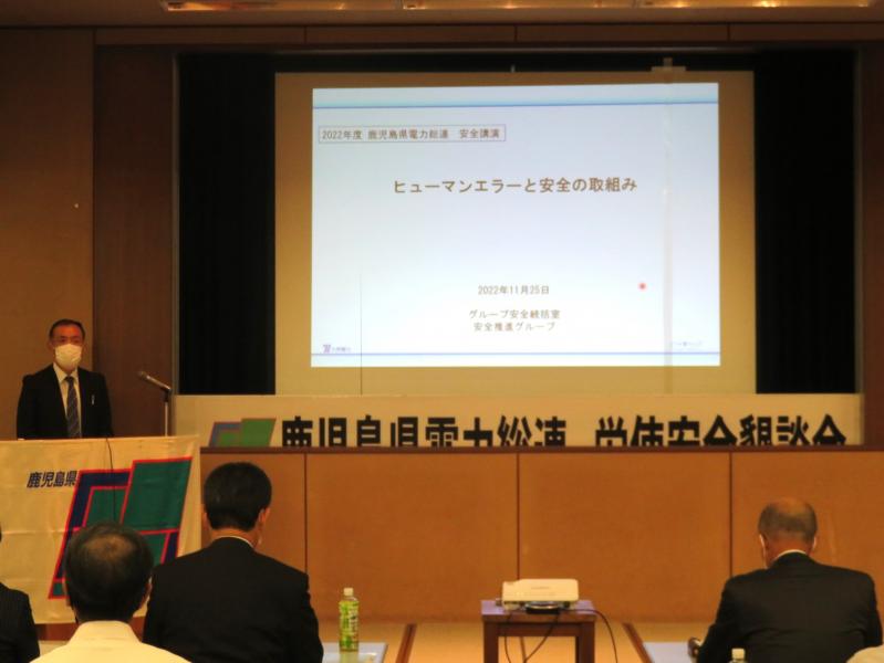 鹿児島県電力総連は、11月25日(金)に、労使合わせて51名の皆様にご出席頂き、「2022年度労使安全懇談会」を実施いたしました。