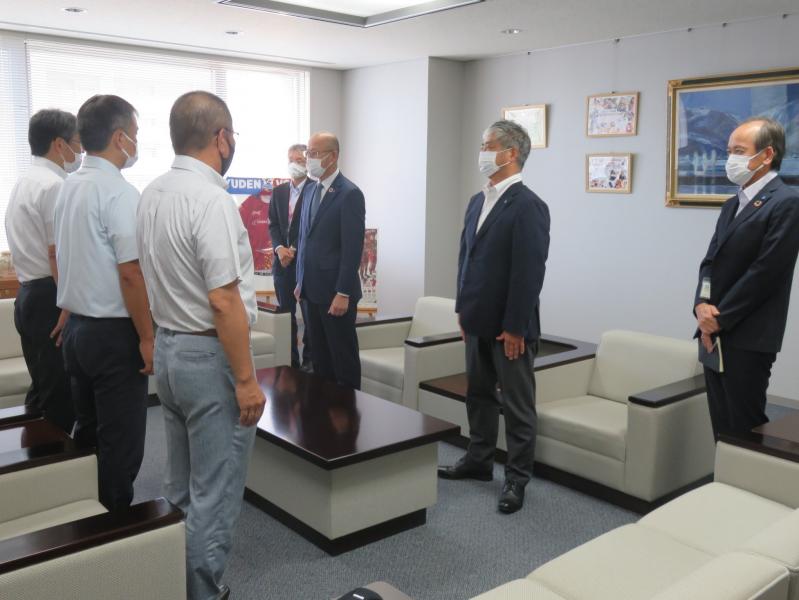 百武会長は、『安全最優先の徹底』について「昨年鹿児島管内で発生した死亡災害からちょうど1年が経ちました。台風復旧作業も重要ですが電気事業に働くすべての皆さんの安全を確保していただき、安全最優先の徹底をお願いしたい」と、樋口 鹿児島支店長(九州電力)、布谷 鹿児島支社長(九州電力送配電)に口頭要請しました。
