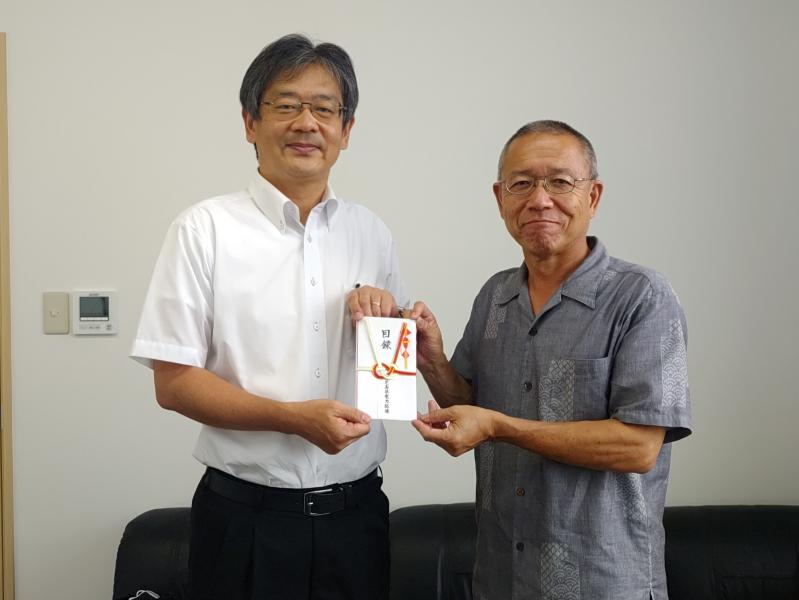 寄付金は、7月20日(木)に、KAKKIN鹿児島の議長である眞下浩一様にお渡し、7月21日(金)には、連合鹿児島の会長であり、鹿児島県労福協の理事長でもある、下町和三様にお渡しいたしました。