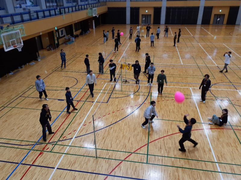 当日は、総勢40名で体育館を使用したイントロカルタなどのレクレーションをはじめ、体を動かすことで、単組だけでなく県を超えて交流ができました。