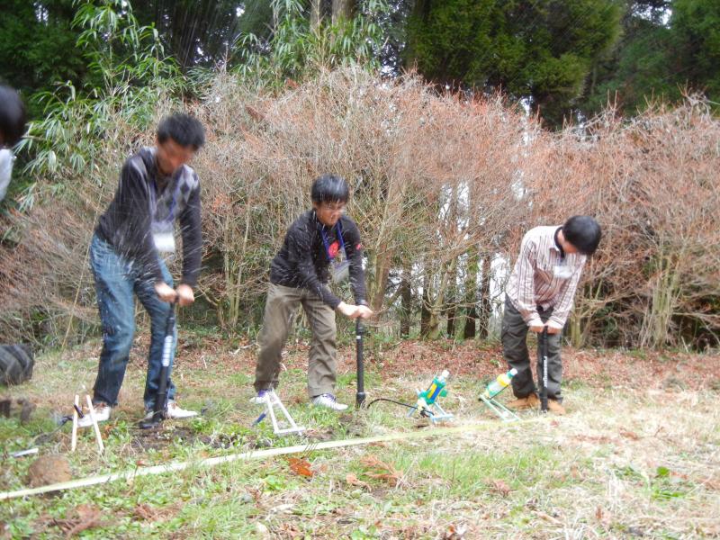 2日目は、アウトドアイベントの実践として「ペットボトルロケット」作りに挑戦。500ccのペットボトル2本を使ってロケットを作り、空気の力で飛ばし班ごとに飛距離を競いました。初めはうまく飛ばなかったものの、それぞれの班で知恵を絞り、飛距離を伸ばすためのいろいろなアイデアを出し合い、最後には25mを超える飛距離を記録した班もありました。物作りと競技をグループで協力しながら楽しく実施できるイベントに、参加者一同、大興奮でした。