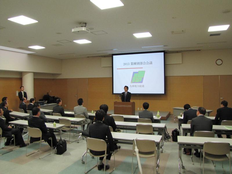 11月18日(月)~19日(火)にかけて、2013年度業種別部会会議を開催しました。震災以降、原子力発電所が再稼働できないことから電力会社の経営環境は悪化しており、加盟単組においても九州電力の経営効率化施策や緊急支出抑制施策の影響を受けて、委託業務廃止による雇用問題への発展、受注減による大幅な収益悪化、先行き不透明による離職者の増加など極めて厳しい経営環境に発展しています。このような状況にともない、工場移転提案や労働諸条件の引き下げ見直しなど加盟単組にとっても重要案件が増加しています。さらに、組合員や家族からも将来に対する不安の声が多く聞かれる状況となっています。 九州電力総連に加盟する単組は、様々な業種に分かれています。このため、同じ業種別に集まり取り巻く課題を共有化し、部会会議内で出された課題を精査し、その解決に向けて関係箇所へ提言することを目的に業種別部会会議を開催しています。
