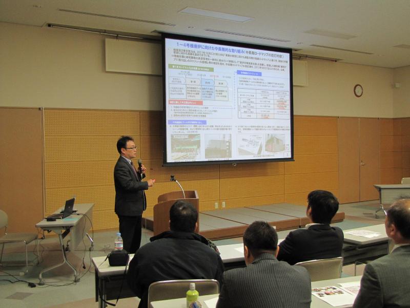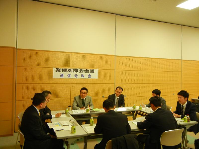 17時30分からは、19日に開催する「電力サポート分科会」「製造分科会」「通信分科会」に出席するみなさんにも出席いただき、「電力関連産業を取り巻く情勢を踏まえた今後の対応について」全国総連 社会産業局 小林部長より講演をいただきました。これにより、福島第一原子力発電所の現状、電力システム改革を巡る動向を共有化する事が出来ました。2日目についても、引き続き、18日と同じ内容で業種別部会会議を開催しました。