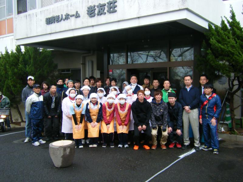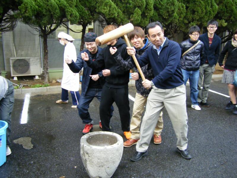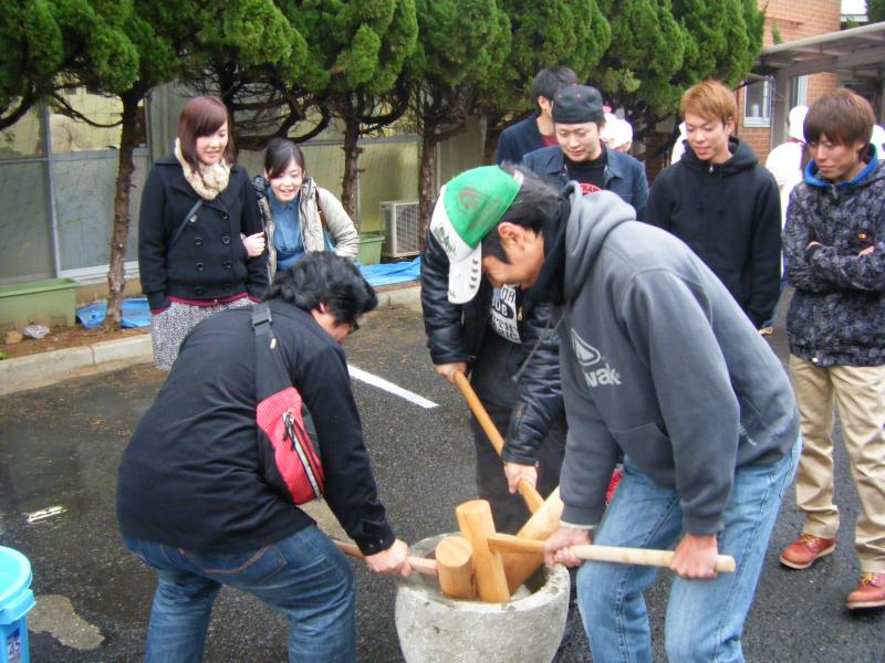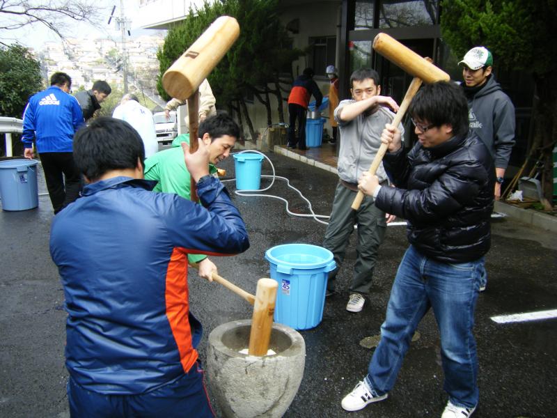 長崎県電力総連ハートネット21委員会は平成25年12月1日(日)に老人福祉施設楽老会において「餅つき」を行いました。参加したのは県電力総連と他産別労組の青年委員会を中心とした28名。参加者の半数以上は餅つき体験は初めて。1回に蒸すもち米の量やせいろを重ねる順番などを入居者から教わりながらもち米を蒸しあげ、いざ餅つきへ。最初は上手くつけなかったものの、回を重ねるごとにコツをつかみ、参加者全員が餅つきを体験しました。