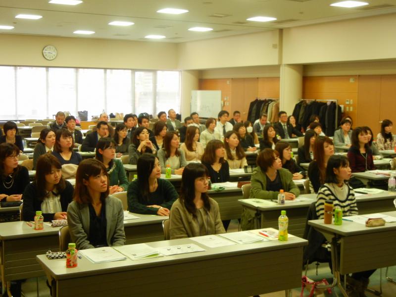 12月7日(土)、女性フォーラムと男女平等参画推進フォーラムを開催しました。 10時30分から「女性がいきいきとと働き続けるためには」というテーマで「2013女性フォーラム」を開催。 まず、「自分らしく、生き生きと仕事をするためには」と題して、ドイツ式フットケア・ボディケア アンフィニビーの松崎加奈子様から「美と健康は足元から」が重要と、足のトラブル・フットケアの対処法等についてアドバイスいただきました。さらに、普段、何気なくはいている靴の重要性も教えていただきました。また、カラーコーディネートについても学び、パーソナルカラーとイメージカラーの重要性。色は本能であり、色で8割が判断される。人は、6秒でその人のイメージができあがり、そのイメージは3年は消えないなど、プライベートでもビジネスでも活かせる色の使い方についての貴重なお話しをいただきました。その後、ワールドカフェ方式により、「なぜ女性リーダーは少ないのか」をテーマに参加者同士で意見交換を行いました。